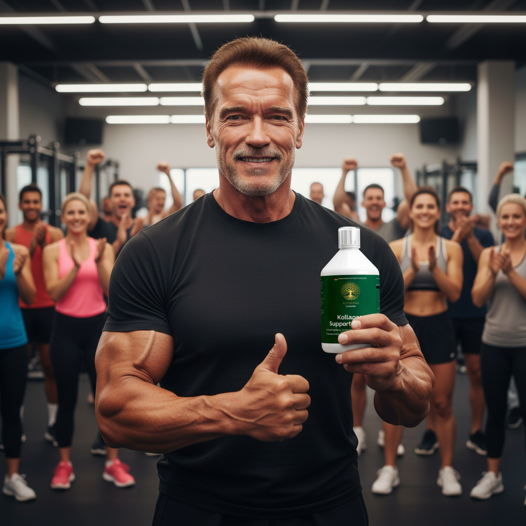 Kurkumasaft aus Konzentrat, hydrolysiertes Kollagen Typ 1, 2 & 3 (enthält die Aminosäuren: L-Glycin, L-Prolin, L-Alanin, L-Hydroxyprolin, L-Glutaminsäure, L-Arginin, L-Asparaginsäure, L-Serin, L-Lysin, L-Leucin, L-Valin, L-Threonin, L-Phenylalanin, L-Isoleucin, L-Hydroxylysin, L-Methionin, L-Histidin, L-Tyrosin, L-Cystein), Säureregulator (Citronensäure), Vitamin C, MSM (Methylsulfonylmethan), Glucosaminsulfat, Chondroitinsulfat, Hyaluronsäure, Aroma (natürliches Aroma), Konservierungsstoffe (Kaliumsorbat, Natriumbenzoat), Farbstoff (Süßkartoffelpulver), Süßungsmittel (Sucralose, Acesulfam-K), Selen, Vitamin D.
